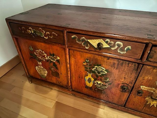 Mueble chino de madera con ilustraciones hechas a mano pertenecientr a un maestro