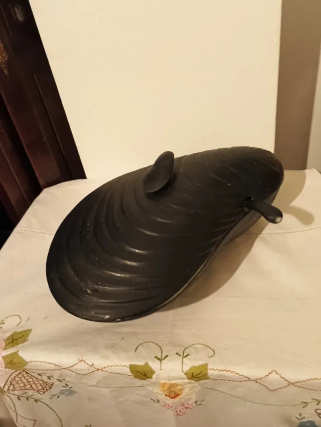 Bandeja de cerámica en forma de mejillón, para servir los mejillones en la mesa.