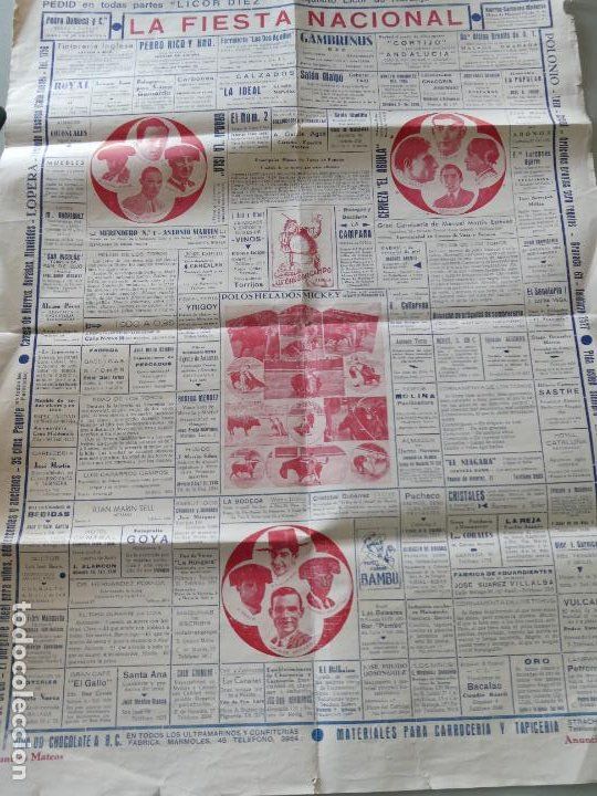 MUY ANTIGUO CARTEL PUBLICITARIO TOROS TAUROMAQUIA AÑOS 30 40 MÁLAGA. CERVEZA ÁGUILA CRUZCAMPO