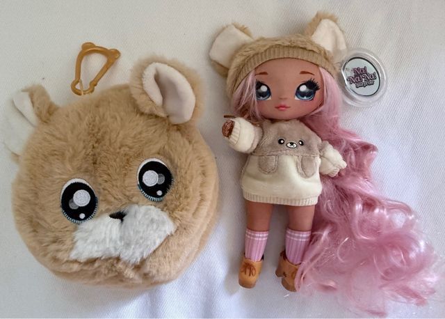 - Viene con un bolso peludo con forma de oso.
