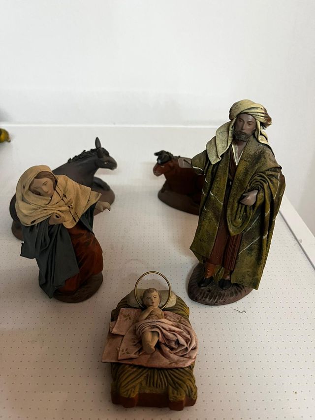 Conjunto de figuras para belén, realizado artesanalmente. - 6 Figuras de Nacimiento. - Medida aproximada de 14 cm. - Diseño tradicional.
