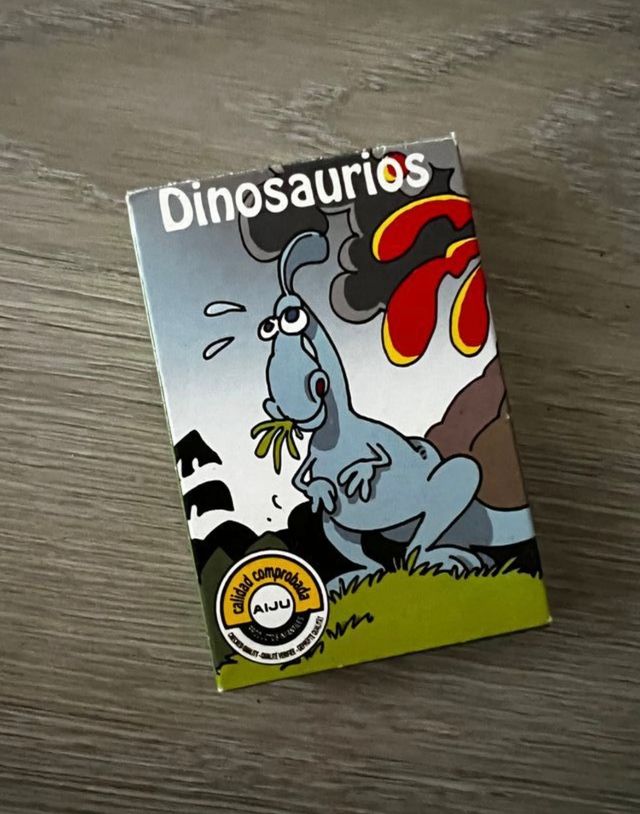 Con esta baraja se juega a formar parejas. Les niñ®s (de 4 a 6), podrán organizar el juego repartiendo la totalidad de las cartas y presentando el número de parejas de dinosaurios que es capaz de formar. Una vez hecha esta operación, cada jugador presenta por el dorso, sin que lOs otr®s los vean, sus cartas, de las cuales, el contrario coge solamente una y si a la vez forma pareja la expone sobre la mesa. Gana quien primero se quede sin cartas.