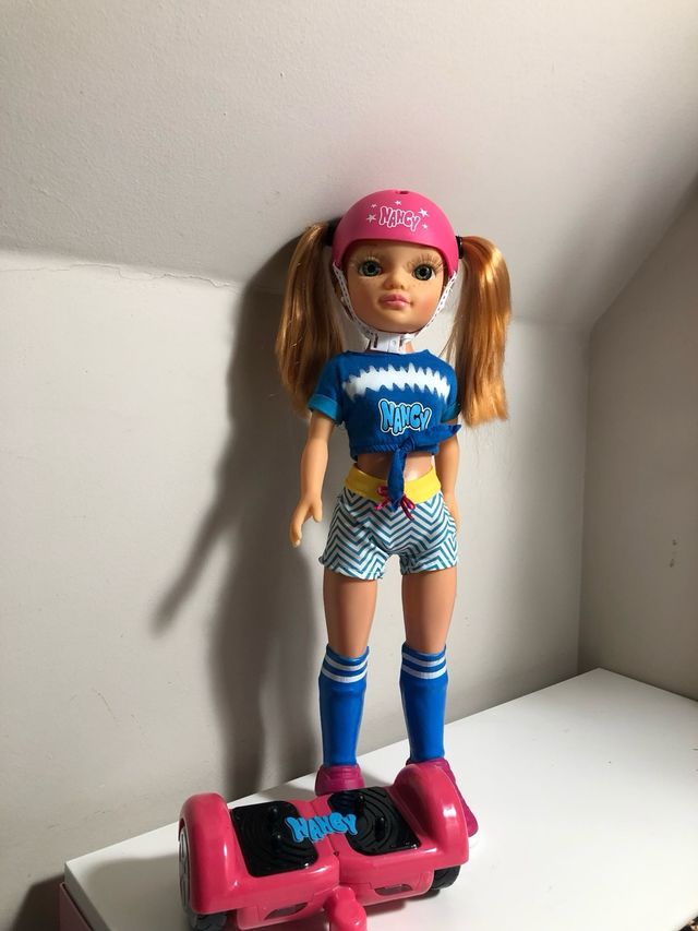 Nancy con patinete hoverboard, con movimiento, incluye patinete muñeca y ropa