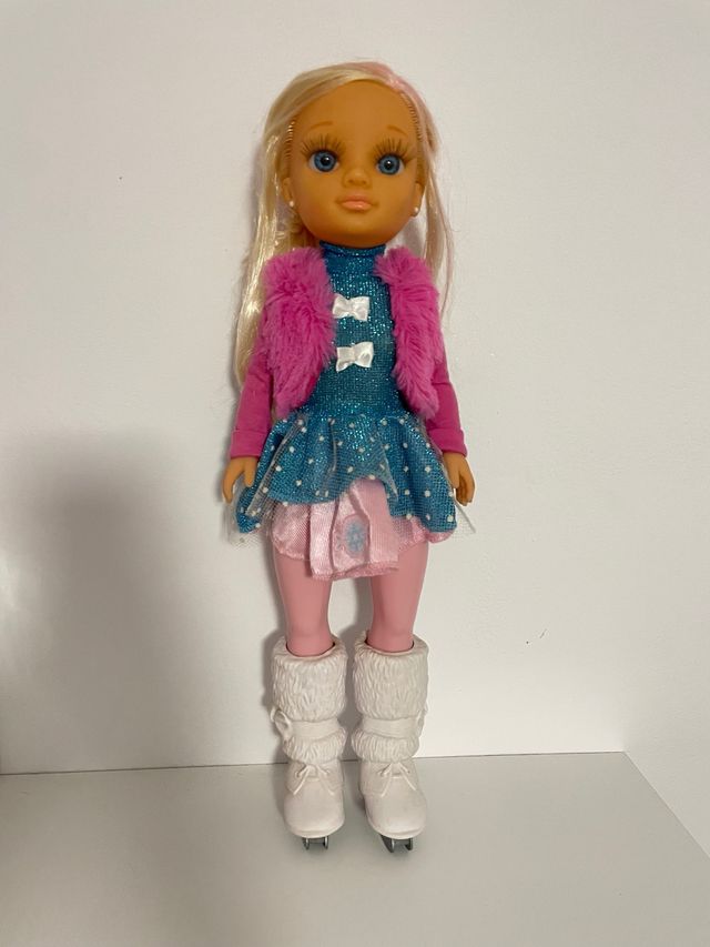 Detalles del productoMuñeca Nancy vestida para patinar sobre hielo.