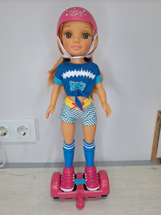 Detalles del productoPreciosa muñeca Nancy con su patinete eléctrico. Está en muy buen estado y lista para jugar.