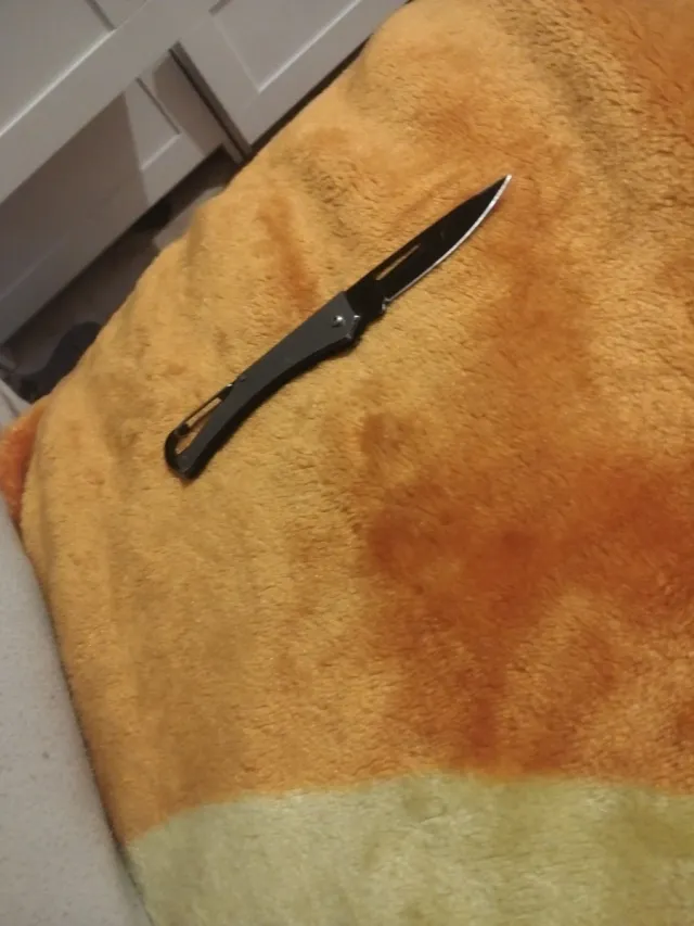 Navaja plegable de color negro. Su diseño es elegante y funcional. - Hoja afilada de metal. - Mango ergonómico.