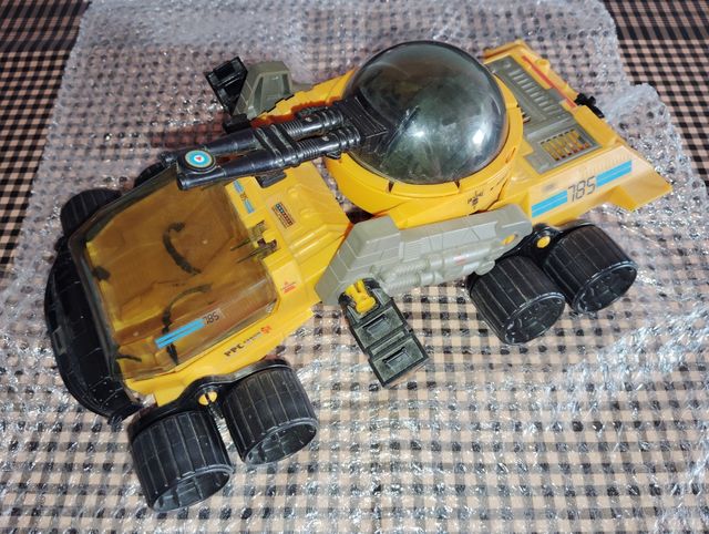 Nave Razorback de Gi-Joe. Un vehículo de juguete icónico. - Diseño amarillo y gris. - Cabina transparente. - Ruedas todoterreno.