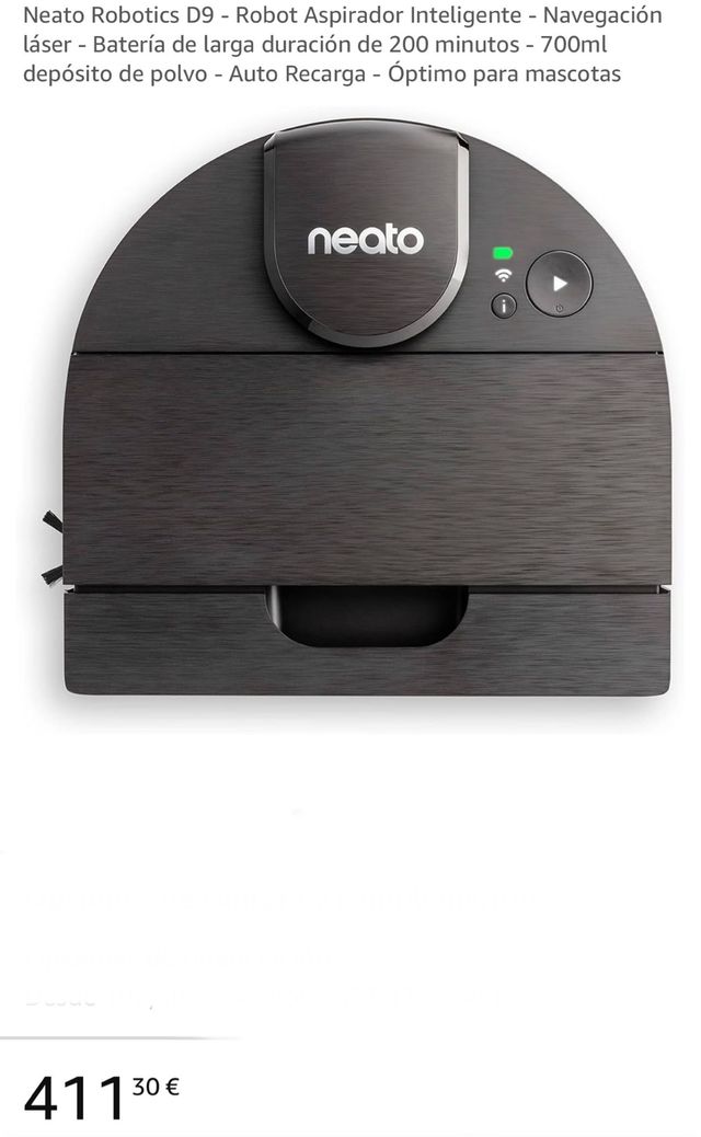 Detalles del productoNeato Robotics D9 - Robot Aspirador Inteligente - Navegación láser - Batería de larga duración de 200 minutos - 700ml depósito de polvo - Auto Recarga - Óptimo para mascotas.