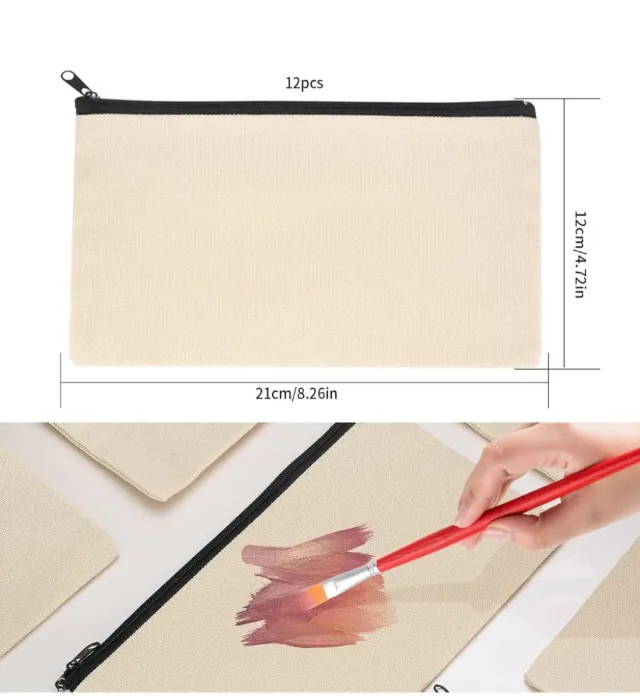 Set de 8 neceseres o estuches de lona, listos para personalizar.