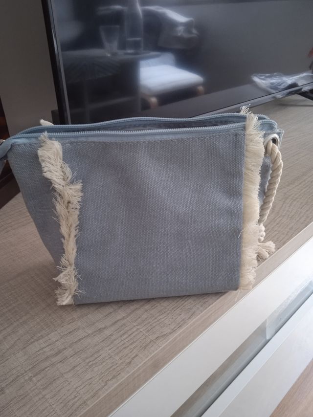 - Está hecho de un material de lona resistente.