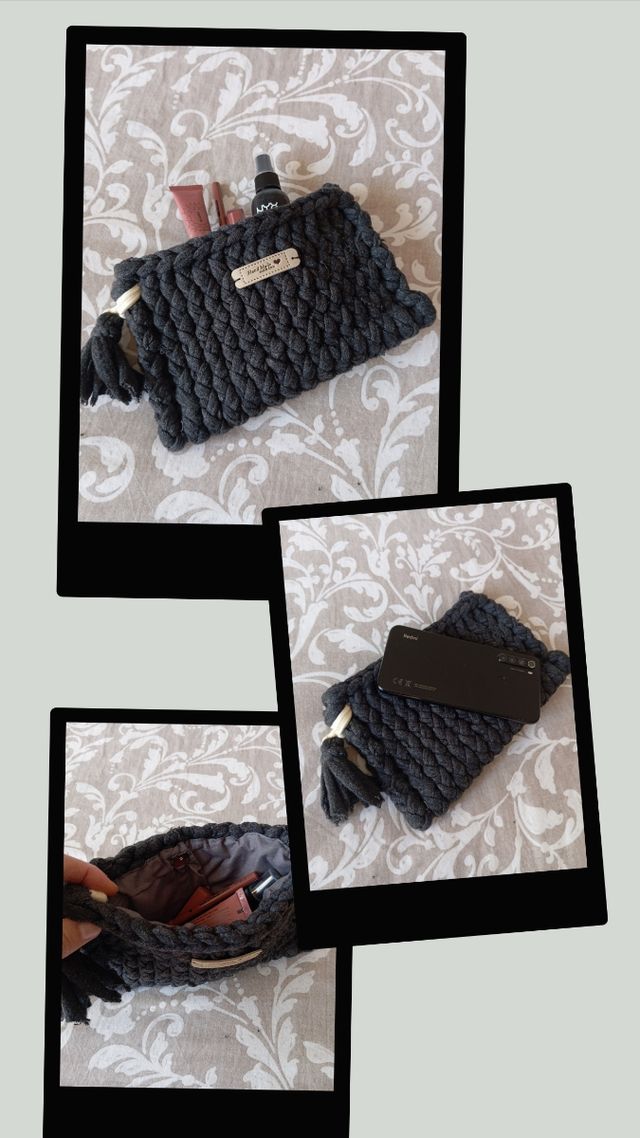 Neceser gris tejido con borlas