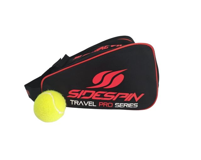 El neceser SideSpin Travel Pro Series en color negro y rojo es el compañero ideal para los apasionados del pádel. Diseñado para la máxima funcionalidad, su tamaño compacto de 26x13x14cm