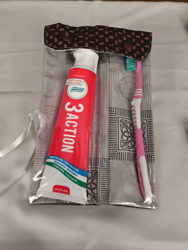 - Incluye un neceser y un espacio para cepillo y pasta.