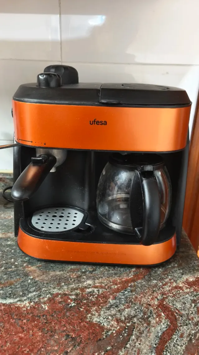 Negociable Cafetera Ufesa en color naranja. Ideal para preparar café. Usada tres veces. - Diseño moderno. - Jarra de cristal. - Bandeja extraíble.