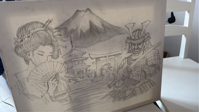 NEGOCIABLE!! Dibujo japonés Geisha Samurai Fuji