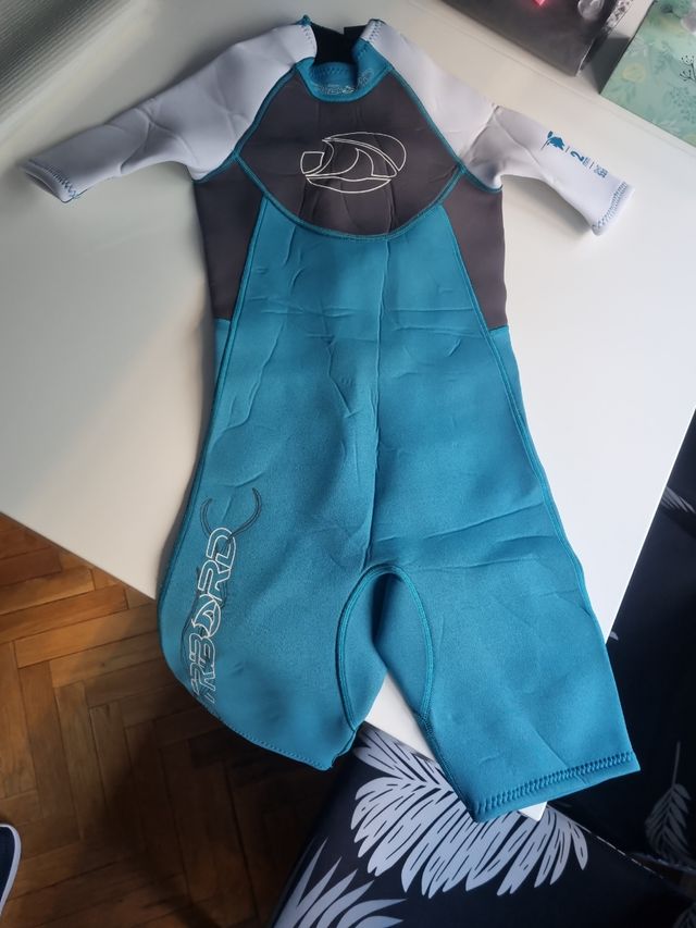 Color azul, talla 12años, 2mm, por la parte trasera cremallera