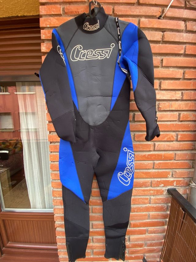Neopreno de la marca Cressi en color azul y negro. 5mm Talla para mas de 1’75m - Diseño con paneles azules. - Cierre con cremallera en los tobillos. - Cuello alto.
