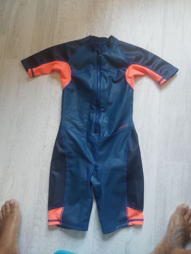 Neopreno fino corto azul y naranja talla 7 años