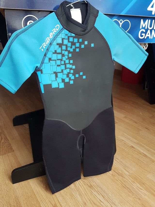 Lote 2 neoprenos manga corta y pantalón corto Azul y rojo marca Tribord Talla 8 años Precio por unidad 9 euros Precio por ambos 15 euros