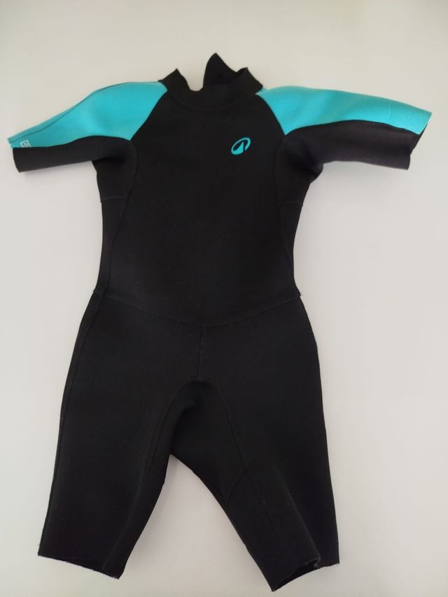 Detalles del productoNeopreno de manga corta para niños, ideal para actividades acuáticas, talla 5-6 años.