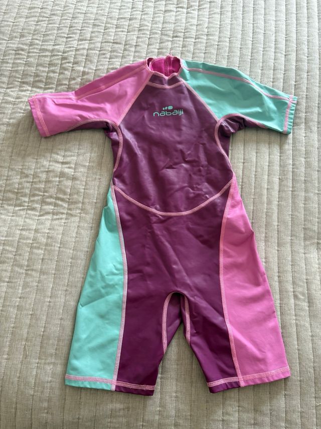 Traje de neopreno para niños de la marca Nabaiji. - Diseño multicolor con paneles. - Mangas cortas. - Cremallera frontal.