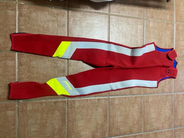 Neopreno Unisex rojo y azul, talla M. Está en buen estado. - Neopreno de una pieza. - Color rojo y azul. - Talla M. - Cierre con botones a presión.
