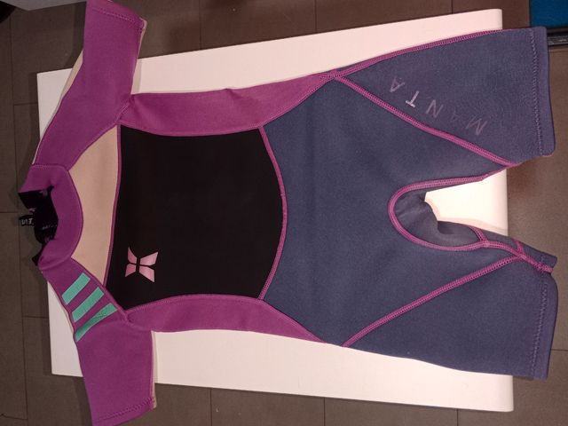 Detalles del productoNeopreno de manga corta y pernera corta, ideal para deportes acuáticos. Talla 7. Está muy bien conservado, únicamente tiene una especie de carrera en el "trasero", de ahí el precio, es calentito.