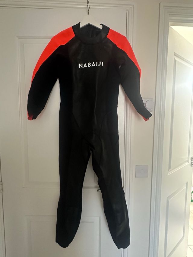 Neopreno Nabaiji para adulto, talla 44 M. Es de color negro y naranja. 3 mm - Neopreno de manga larga. - Diseño deportivo. - Perfecto estado. - Usado una vez.