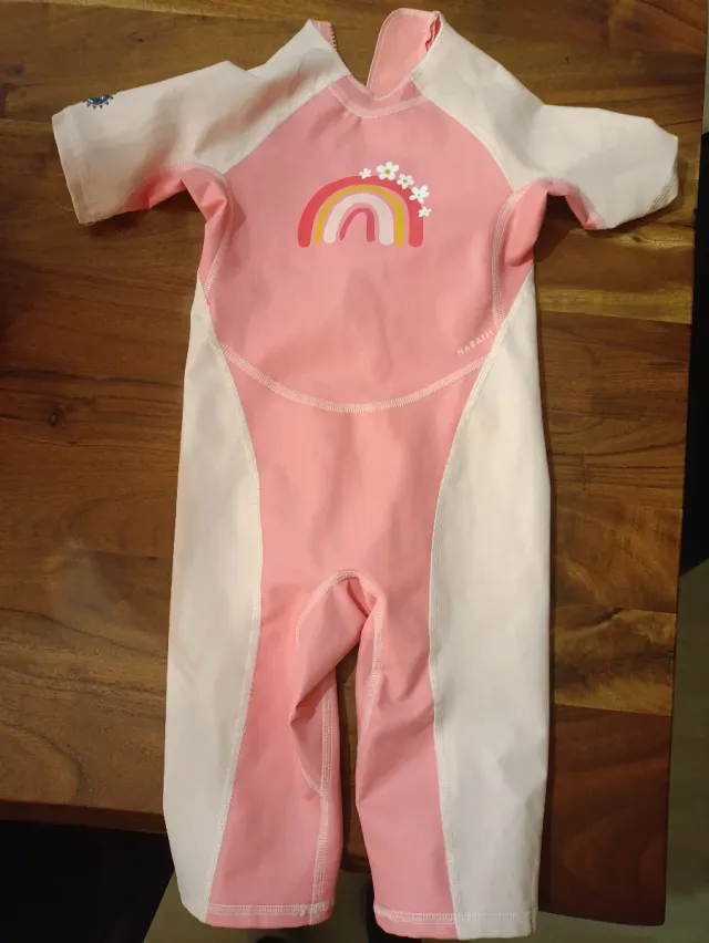 Detalles del productoTraje de neopreno para niña con diseño de arcoíris.