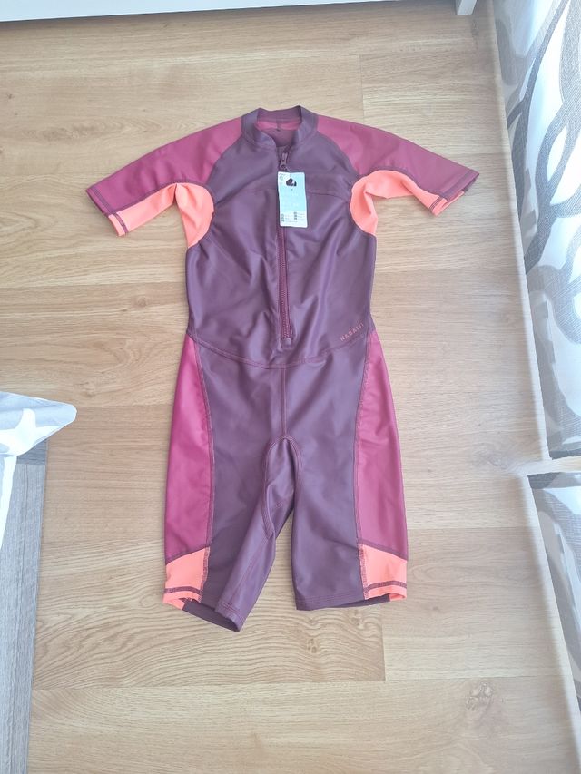 Detalles del productoNeopreno infantil Nabaiji, talla 10-11 años. Es de color morado oscuro con detalles en coral. - Neopreno de manga corta. - Cremallera frontal. - Perfecto para actividades acuáticas.