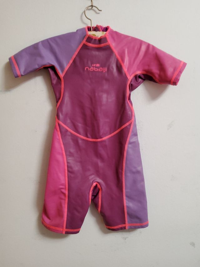 Detalles del productoTraje de neopreno para niña de la marca Nabaiji. Es de color morado y rosa, con detalles en color coral. Está en perfecto estado. Usado una vez.