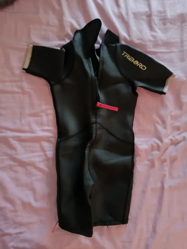 Neopreno de manga corta para niña de la marca Tribord. - Color negro. - Cierre de cremallera frontal. - Talla 6.