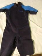 Traje de neopreno para niño de 5 años. Ideal para actividades acuáticas. - Color azul y negro. - Manga corta y pernera corta.