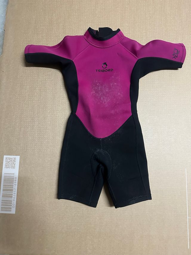 Neopreno de manga corta para niño de la marca Tribord. - Color fucsia y negro. - Talla 5/6.