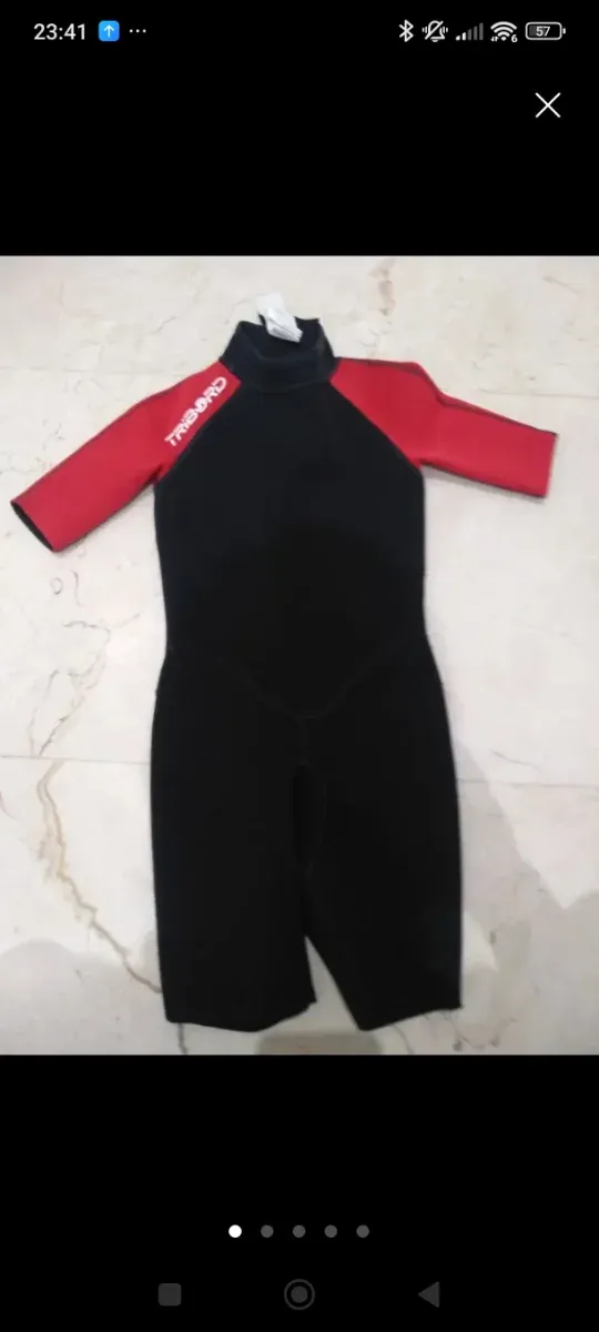 Neopreno de manga corta para niño de la marca Tribord. - Color negro y rojo. - Talla 6.