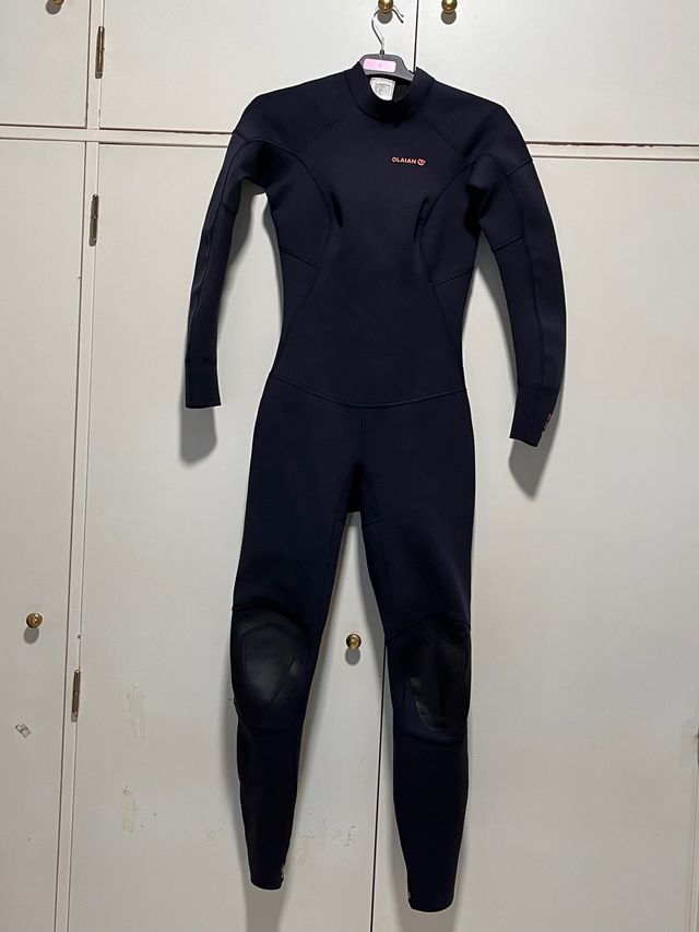 Detalles del productoNeopreno OLAIAN de 2.2 mm, ideal para aguas de 17°C a 22°C. Está en perfecto estado y es de color azul marino.