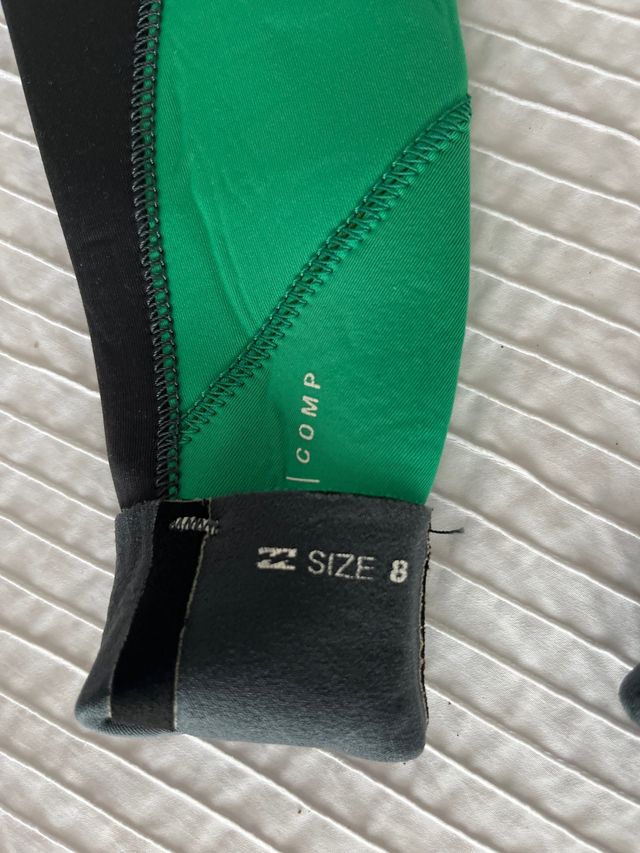 Neopreno de la marca Quiksilver para niño, en talla 8. Color verde y negro. - Diseño Comp. - Cierre de velcro en el tobillo.