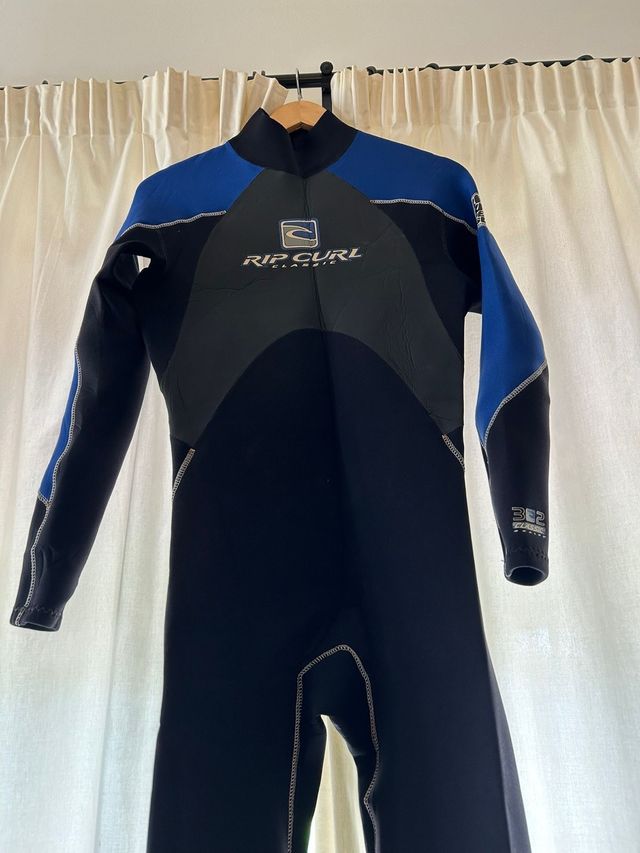Neopreno de manga larga de la marca Rip Curl. - Color principal negro con detalles en azul. - Logo de Rip Curl en el pecho. - Indicación 3/2 en la manga.