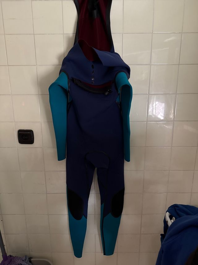 Neopreno de surf en buen estado. - Talla: No especificada en la imagen. - Color azul marino y turquesa. - Cremallera frontal. - Rodilleras y coderas reforzadas.
