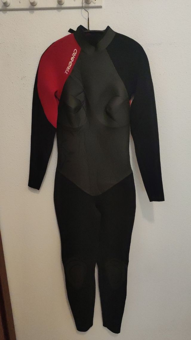 Neopreno de la marca Tribord del Decathlon, talla 40. Poco usado, está en muy buen estado y listo para usar. - Color negro y rojo. - Mangas largas. - Cremallera en el cuello.