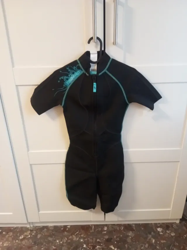 Detalles del productoTraje de neopreno corto de la marca Tribord, ideal para actividades acuáticas. Diseñado en color negro con detalles en turquesa.