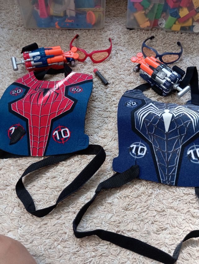 - Dos chalecos de espuma Nerf con diseños de Spiderman y Venom.