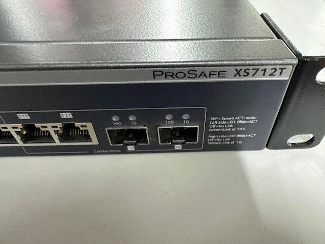 Switch de red NETGEAR ProSAFE XS712T. - Modelo: XS712T - Puertos Combo - Indicadores LED para SFP+ Speed ACT mode