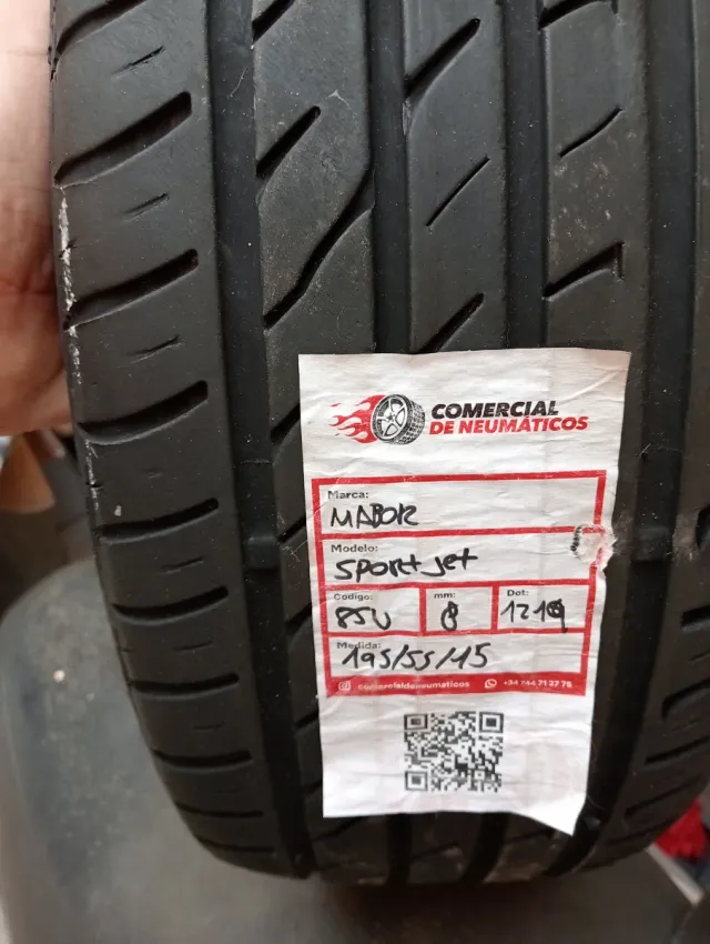 Neumático Mabor Sport Jet sin usar, con medida 195/55/15. - Marca: Mabor - Modelo: Sport Jet - Medida: 195/55/15 - Código: 85U - Diámetro: 8 - Dot: 1219