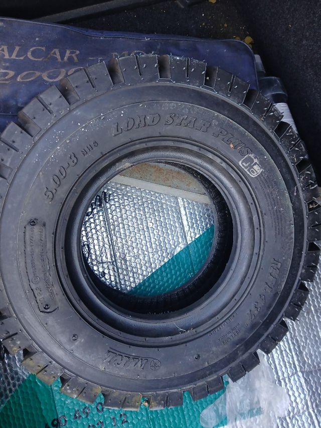 Detalles del productoNeumático agrícola usado Load Star Plus de 5.00-8. Se encuentra en buen estado, aunque presenta señales de uso.