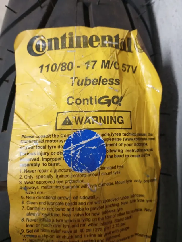Neumático delantero Continental 110/80-17 M/C 57V. - Tipo Tubeless. - Modelo Contigo!.