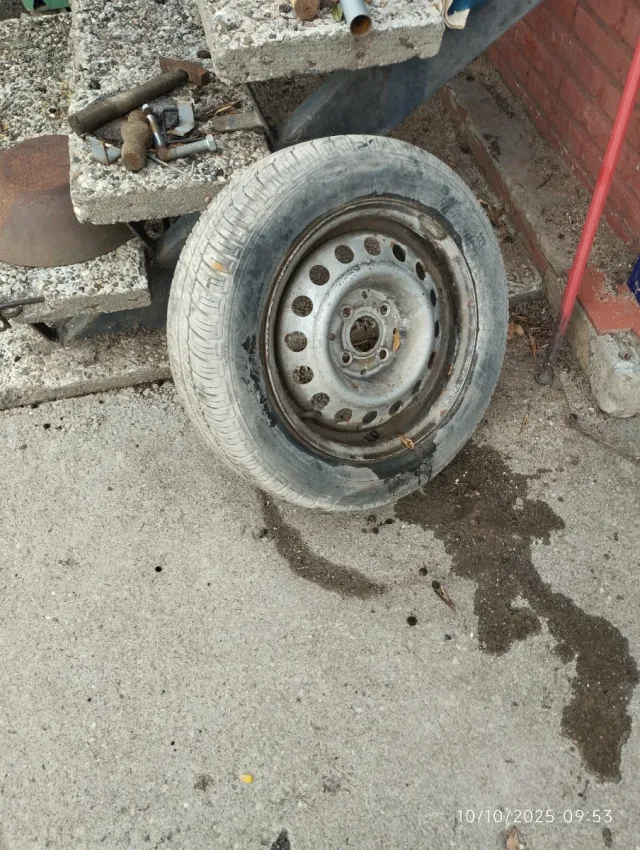 Rueda de coche usada. - Llanta de acero. - Neumático en buen estado.