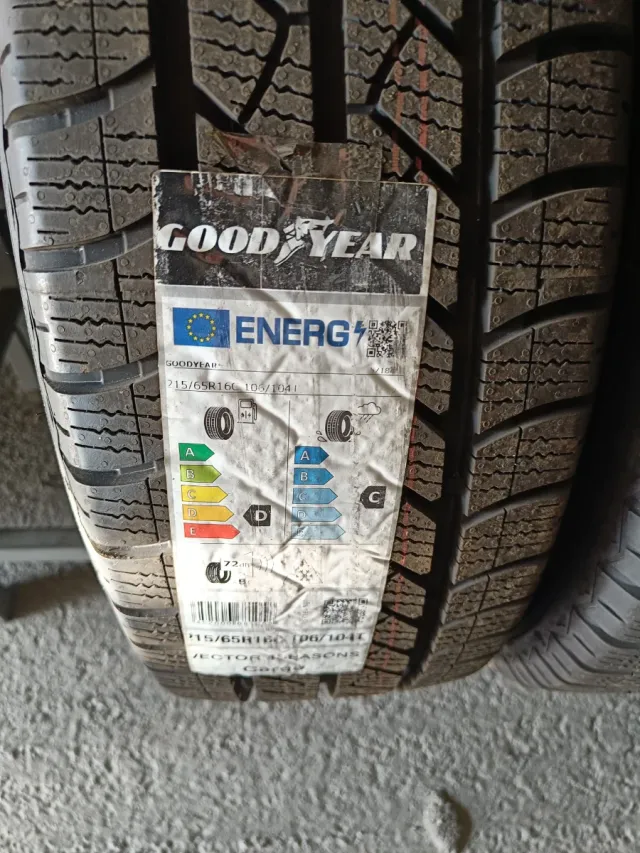 Neumático Goodyear Vector 4 Seasons. - Medida: 215/65R16C. - Índice de carga: 106/104T. - Etiqueta energética: Consumo C, Mojado B, Ruido 72 dB