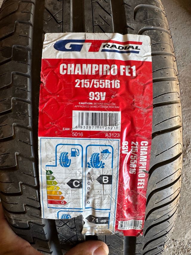 Neumático GT Radial Champiro FE1. - Medida: 215/55R16 - Índice de carga: 93V - Etiqueta energética: Consumo C, Mojado B - Ruido: 71 dB dot 2020