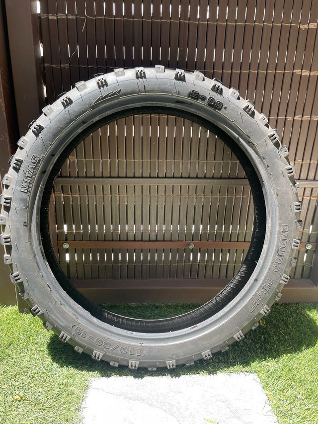 Neumático Mitas E-09 para moto, medida 110/80-19. Perfecto para uso Enduro. - Está en muy estado. - Listo para montar. - Se vende un solo neumático.